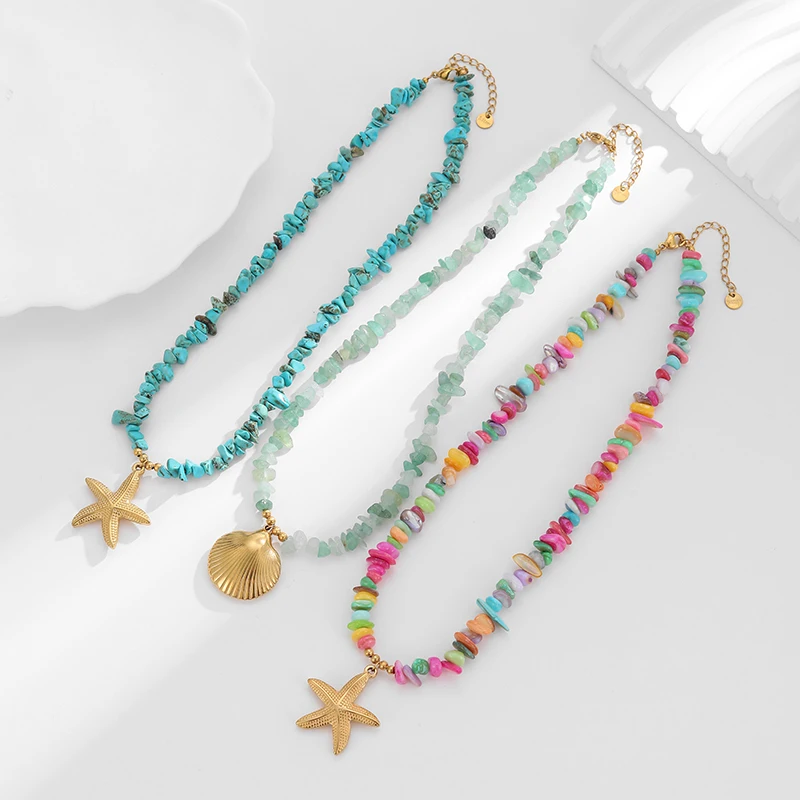 Colored Stone Shell Charm